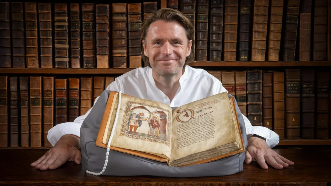 Two pieces of evidence particularly resonate with Woodman regarding Saint Cuthbert. The first is the earliest surviving manuscript portrait of any English monarch, found in a 10th-century manuscript at The Parker Library, Cambridge. Æthelstan is depicted humbly before the saint. “This portrait is one of the most significant images in English history,” Woodman insists.